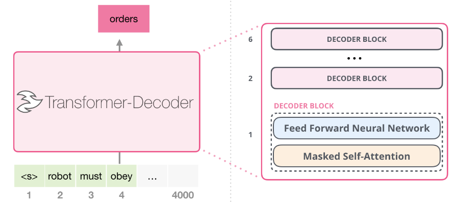 - Transformer의 Decoding 부분만 사용한다. ( multi-layer Transformer decoder )