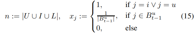 위와 같은 feature vector를 사용하고 여기서 $B^u_{t-1}$은 t 시점에서 User가 구매한 모든 Item을 말한다.