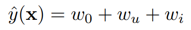 Model Equation이 만들어지기까지 아이디어가 뻗어나온 흐름을 살펴보자면, 우선 추천시스템에서 기본적으로 사용할 수 있는 모델은 아래 식과 같은 선형 모델이다.