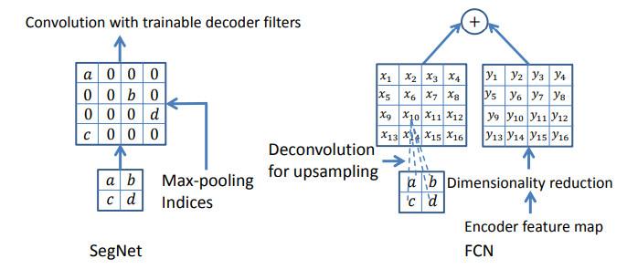 SegNet에서 사용한 새로운 아이디어는 Decoder에서 낮은 해상도 feature map을 Up-sampling 하는 것이다. 이 때 Up-sampling에는 max pooling을 할 때 계산된 index를 기억해서 max unpooling을 해주는 방식인데 이 방법에 대해서는 밑에서 자세히 기술하도록 하겠다.