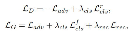 본 논문의 실험에서는 $\lambda_{cls}$ = 1, $\lambda_{rec}$ = 10을 사용하였다. (CycleGAN과 유사)