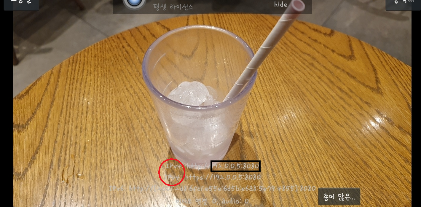 같은 네트워크를 공유하는 컴퓨터 웹으로 해당 주소를 입력하면, 연결된 기기가 추가되며 웹으로 휴대폰 캠의 화면이 나오는 것을 확인할 수 있다.