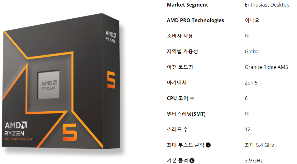 위는 며칠 전 공개된 AMD Ryzen 5 9600X CPU의 성능이다. 최신 CPU 모델은 거의 4GHz 수준의 성능을 보이는 것을 확인할 수 있다.