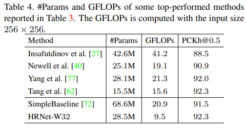 위 Table 3에서 볼 수 있듯이 대부분의 관절에서 좋은 성능을 보였고 Table 4에서처럼 파라미터와 GFLOPs도 모두 적었다.