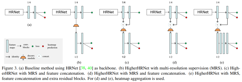 - (b) : MRS(Multi-Resolution Supervision)을 사용한 Higher HRNet