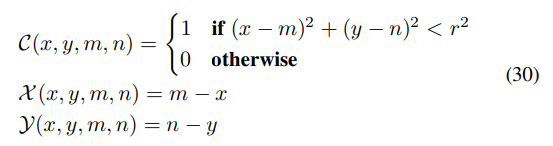 여기서 분류 Heatmap $C$는 Keypoint의 위치를 대략적으로 찾는 역할을 수행하며 $r$은 해당 영역을 Positive로 분류하는 범위를 의미하는 하이퍼 파라미터이다. 회귀 Heatmap $X$와 $Y$의 경우에는 분류 Heatmap이 제공하는 대략적인 위치에서의 Residual 정보를 보존한다(Offset Vector).