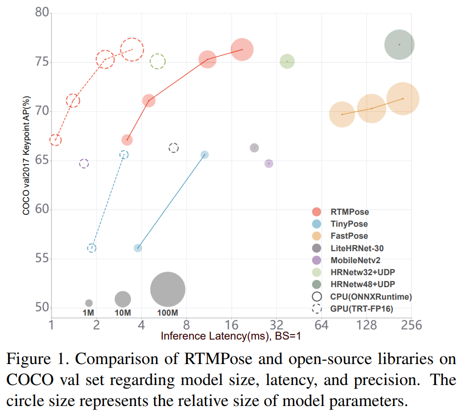 최근 2D Human Pose Estimation 연구는 좋은 벤치마크를 보이고 있지만, 모델 파라미터가 많고 latency가 높아 실제 산업 분야에서 활용하기 어렵다. 따라서 본 논문은 이러한 문제를 해결하기 위해 MMPose를 기반으로 빠른 속도를 내는 RTMPose를 제안한다.