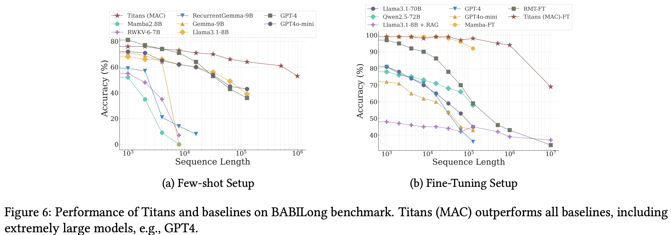 Titans는 또한 200만 이상의 Context Window 크기로 확장할 수 있다는 장점을 가진다.