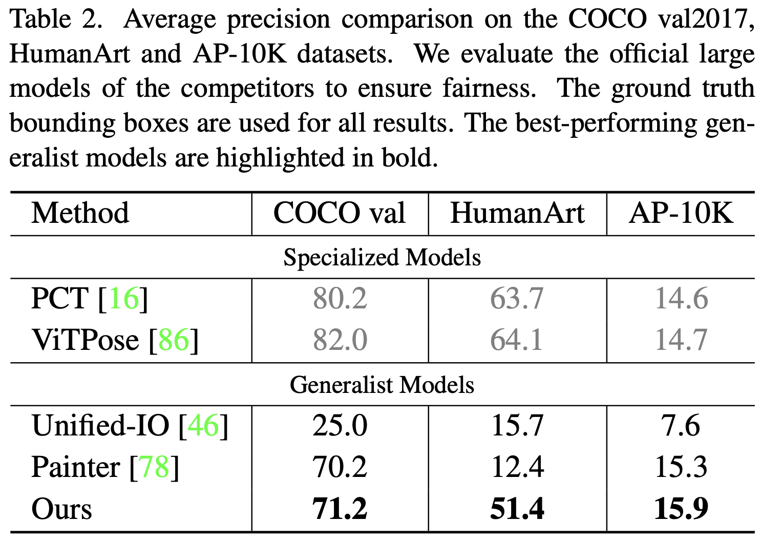 본 논문에서는 Keypoint Detection 성능 평가를 위해 Close-set 평가(COCO)와 Open-set 평가(HumanArt, AP-10K)를 진행하였다.
