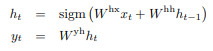 - RNN(Recurrent Neural Network)은 feedforward neural network를 sequence로 자연스럽게 일반화한 것이다. input sequence가 주어지면 표준 RNN은 아래의 방정식을 반복하여 output sequence를 계산한다.