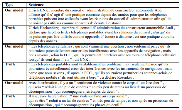 - 동일 데이터 세트에 대한 SMT baseline의 BLEU 점수는 33.30으로 상대적으로 최적화되지 않은 small-vocabulary 신경망 아키텍처가 phrase 기반의 SMT 시스템보다 우수한 성능을 보인다는 것을 확인할 수 있다.
